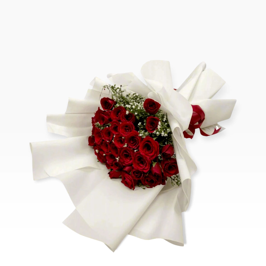 Forty-eight stunning red roses—a majestic arrangement that never fails to make someone's day extraordinary. The Forever Spring bouquet is an all-time favorite, featuring 48 hand-selected red roses paired with white baby's breath, creating a full, lush presentation that fills any room with romance. Perfect for Valentine's Day declarations, anniversary celebrations for your wife, romantic gestures that need to be remembered, or proving true passion