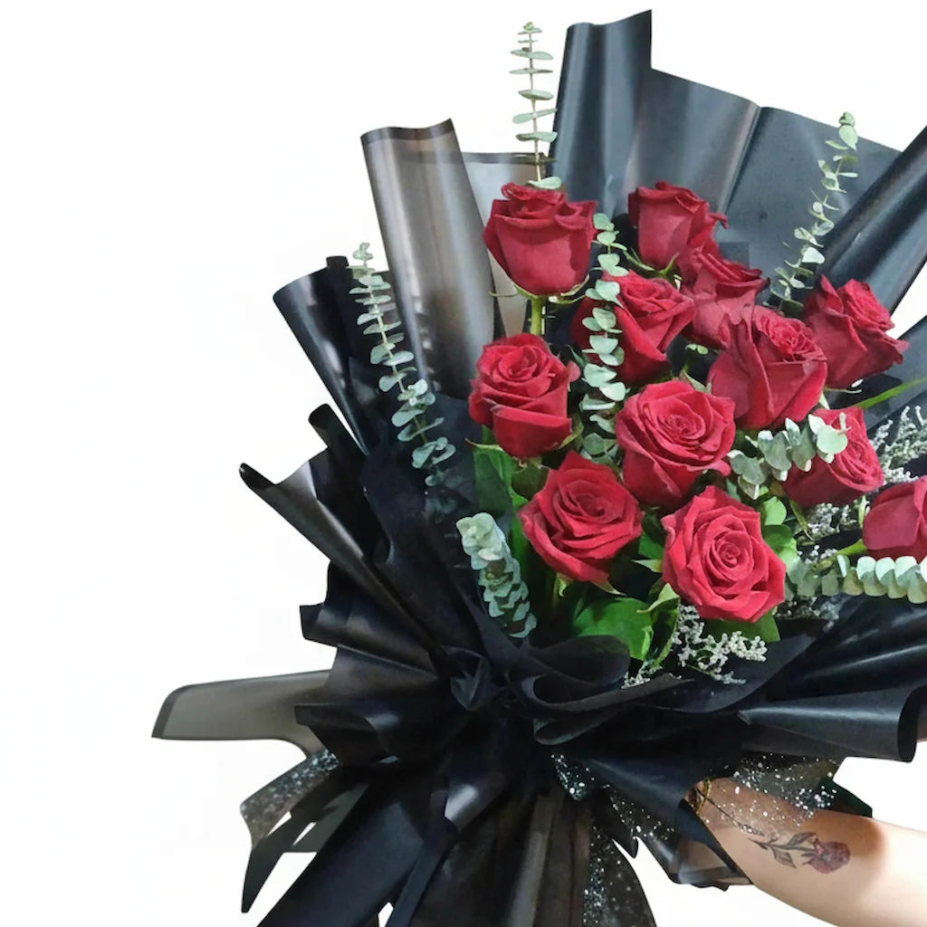 Ecuadorian red roses complimented by fine fresh eucalyptus makes this bouquet an absolute stunner! Elegantly wrapped, this bouquet is perfect for romantic occasions, birthdays or anniversaries as it represents your love and tenderness well. A bouquet that speaks for you!