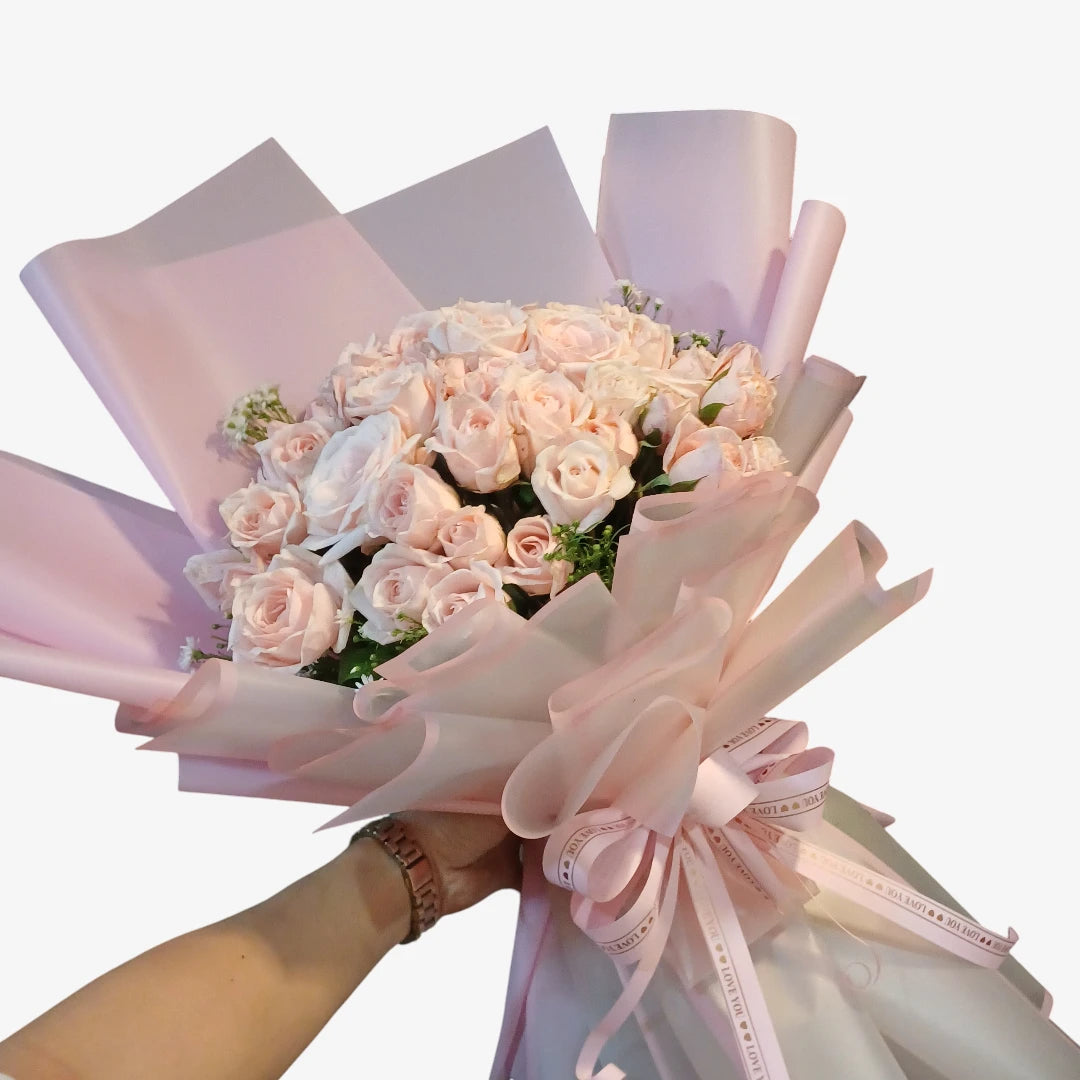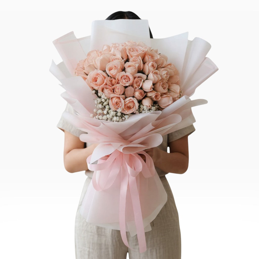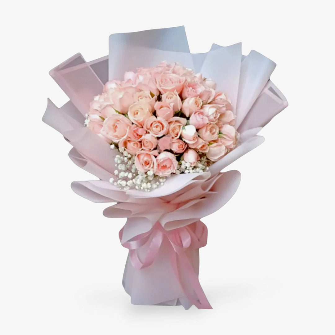 A stunning bouquet of 50 soft pink roses that expresses appreciation, admiration, and heartfelt affection. This graceful arrangement features premium pink roses that create a full, luxurious presentation perfect for showing someone they're truly valued.