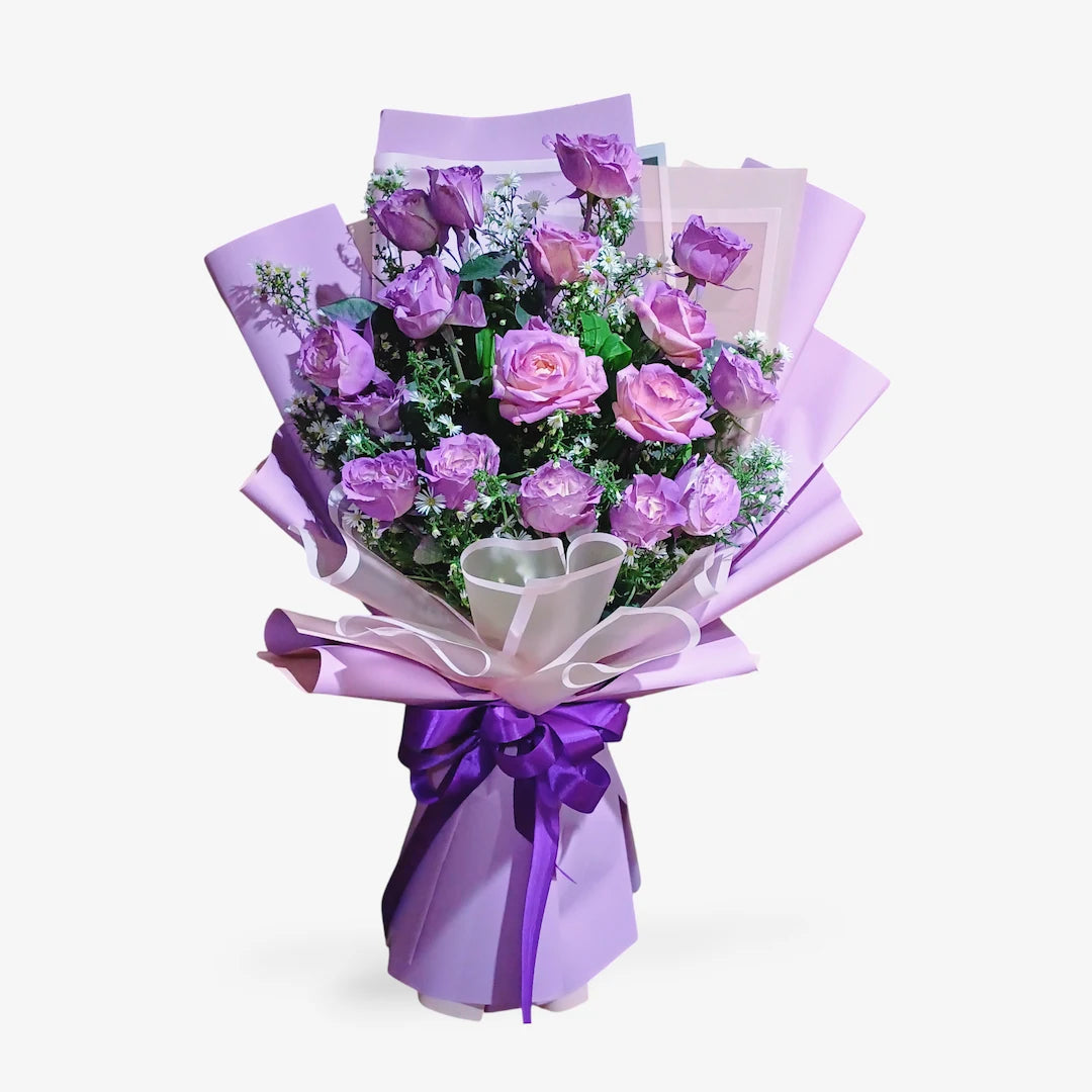 Celebrate life's special moments with this elegant blend of 12 lavender roses. The Save the Date bouquet delivers sophistication with delicate lavender blooms that create a refined, romantic presentation perfect for marking important occasions. Ideal for engagement celebrations, anniversary milestones, save-the-date announcements, or moments when you want to set an elegant tone—because lavender roses bring a unique sophistication that traditional colors simply cannot match.
